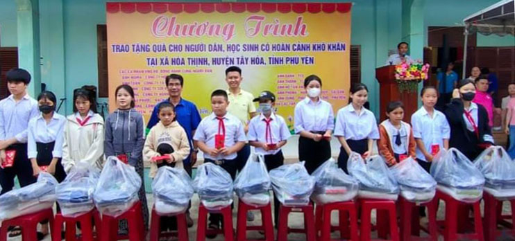 Tại đây, đoàn trao 300 suất quà, mỗi suất 1 triệu đồng cho gia đình chính sách, thương binh, người già neo đơn, nạn nhân chất độc da cam, hộ nghèo và cận nghèo; tặng 100 suất học bổng (1 triệu đồng/suất) cho học sinh nghèo hiếu học; tặng Hội Chữ thập đỏ, Hội Nông dân và Hội Khuyến học xã Hòa Thịnh mỗi đơn vị 10 triệu đồng; đồng thời trao 50 triệu đồng cho Quỹ Khuyến học của Hội Khuyến học huyện Tây Hòa.