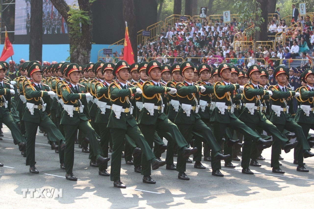 | Khối Sĩ quan Lục quân diễu qua Lễ đài. Ảnh: TTXVN |
